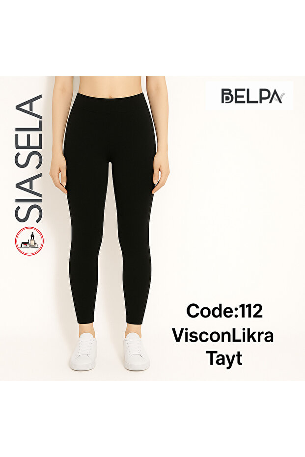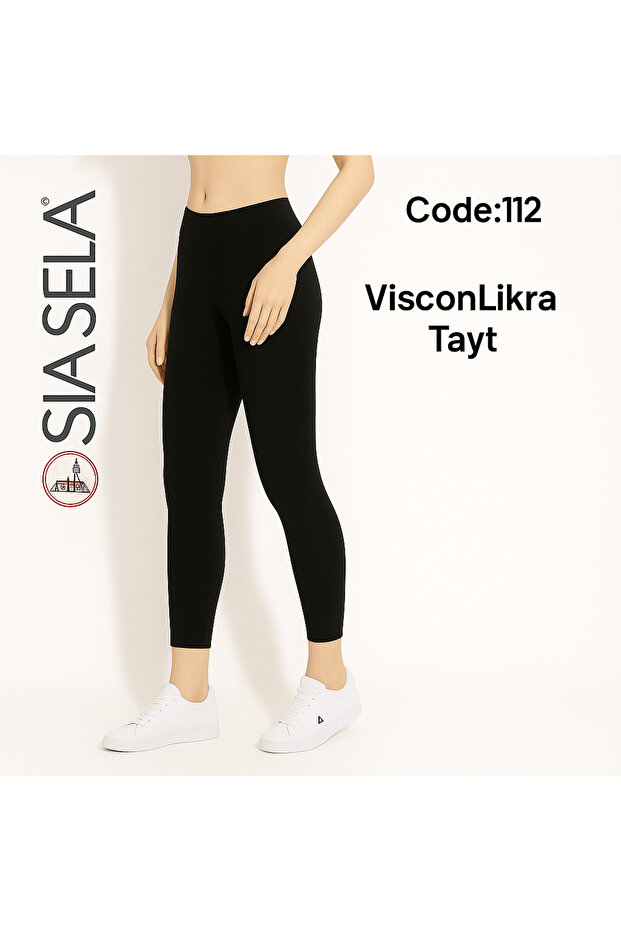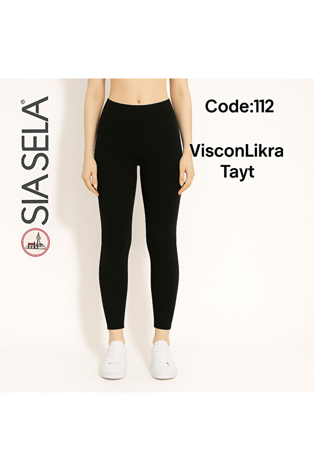 Sıla Sella Viskon Likralı Siyah Kadın Tayt